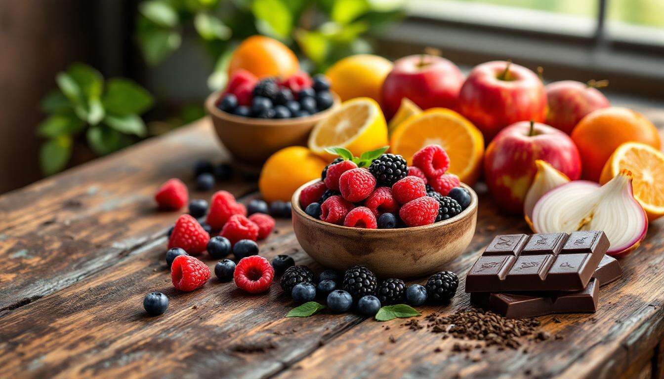 Face à de tels atouts pour la santé, identifier les aliments les plus concentrés en flavonoïdes devient une priorité. Les fruits, par leur couleur et leur variété, figurent en tête de liste.